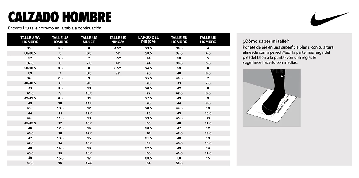 Guía de Talles NIKE Argentina