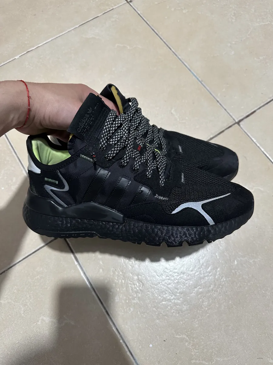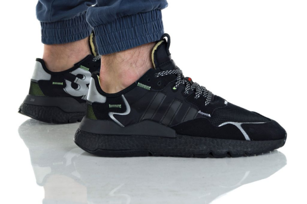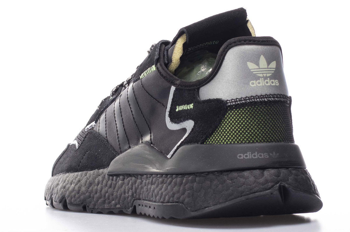 Adidas Nite Jogger 3M Core Black (código de estilo EE5884). Este modelo es una colaboración que destaca por sus amplios paneles reflectantes Scotchlite de 3M, diseñados originalmente en los años 80 para mejorar la visibilidad de los corredores nocturnos.