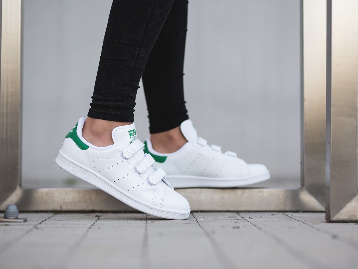 adidas S75187 corresponde al modelo adidas Originals Stan Smith CF (Comfort) en su combinación de colores clásica "Footwear White/Green". Este calzado se distingue por reemplazar los cordones tradicionales por tres correas ajustables de Velcro.