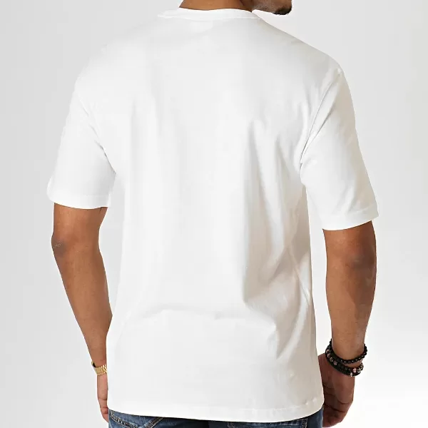 - Detalles de diseño: Cuello redondo acanalado, mangas cortas y un logotipo de silicona o estampado que resalta en el pecho.