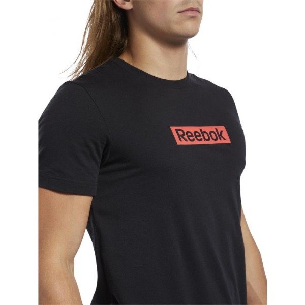 - Diseño: Presenta un cuello redondo, mangas cortas y un estampado con el logotipo lineal de Reebok en el pecho.