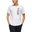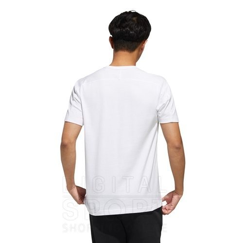 - Diseño: Presenta un corte clásico con cuello redondo acanalado y mangas cortas. Su estética es refinada, incluyendo un estampado vertical de adidas que le otorga un look moderno pero sencillo.