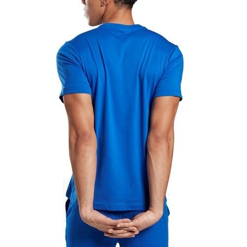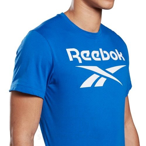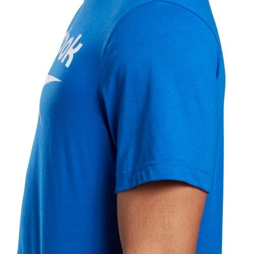 - Diseño: Presenta un cuello redondo acanalado, mangas cortas y un gráfico de Reebok apilado de gran tamaño estampado en la parte frontal.