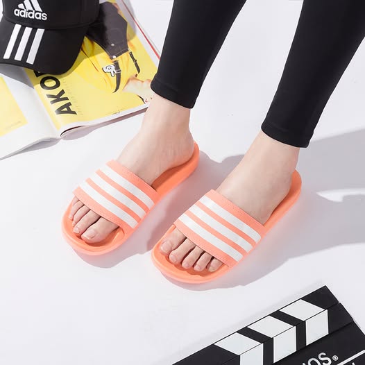 Adidas Adilette Comfort Slides en el colorway "Chalk Coral" (un tono coral suave o rosado). Este modelo para mujer destaca por su plantilla acolchada diseñada para ofrecer una amortiguación superior en comparación con el modelo Adilette estándar.