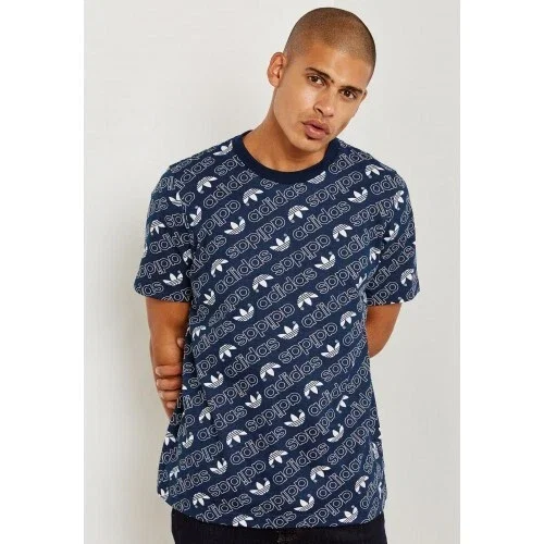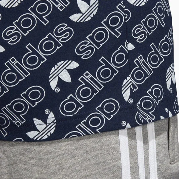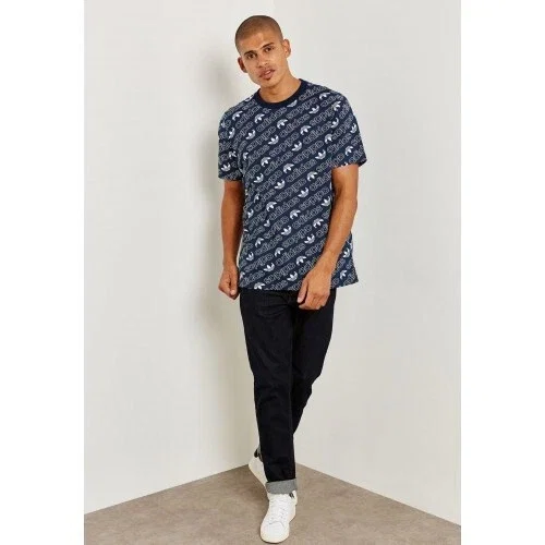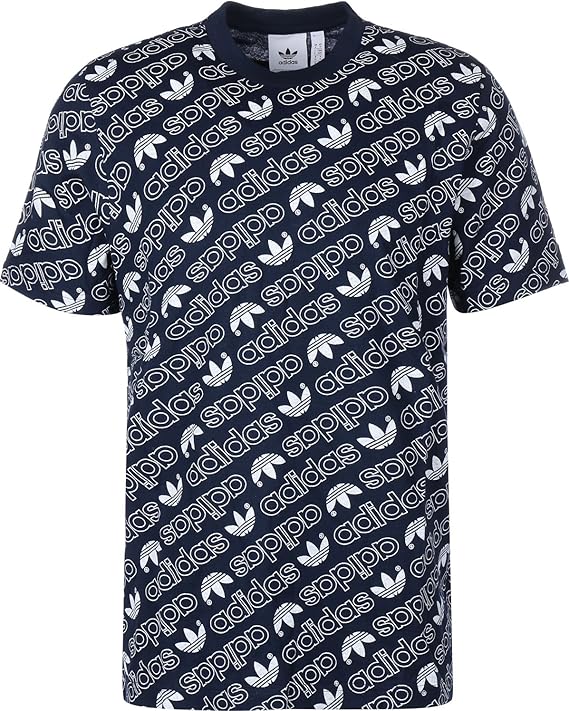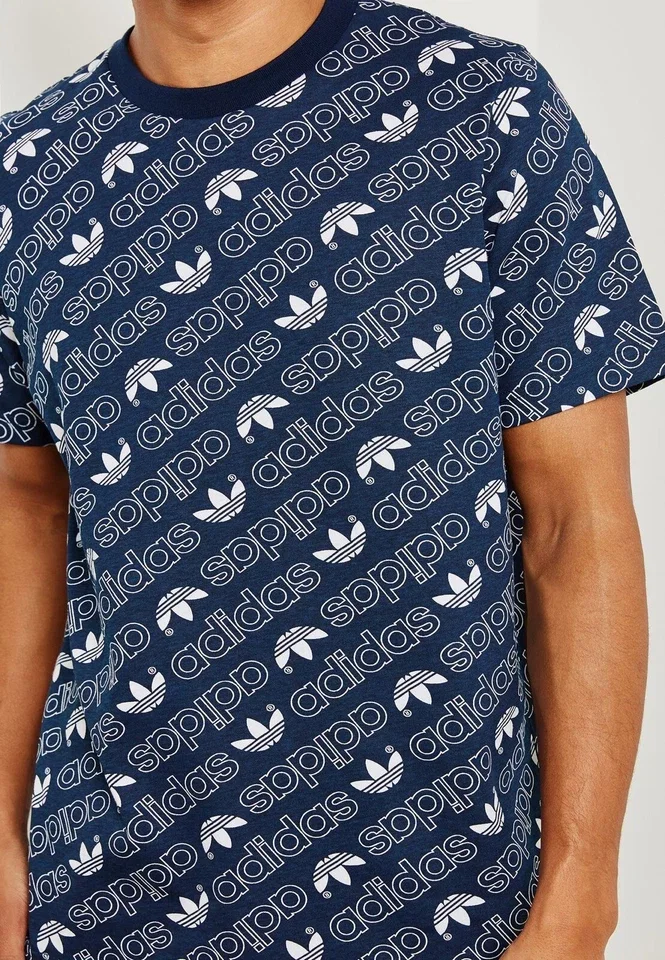 Este modelo se caracteriza por un diseño clásico de cuello redondo y manga corta, destacando un estampado lineal de Trifolio (Trefoil) repetido en toda la prenda. Este patrón está inspirado en los diseños de las plantillas clásicas de los calzado de la marca.