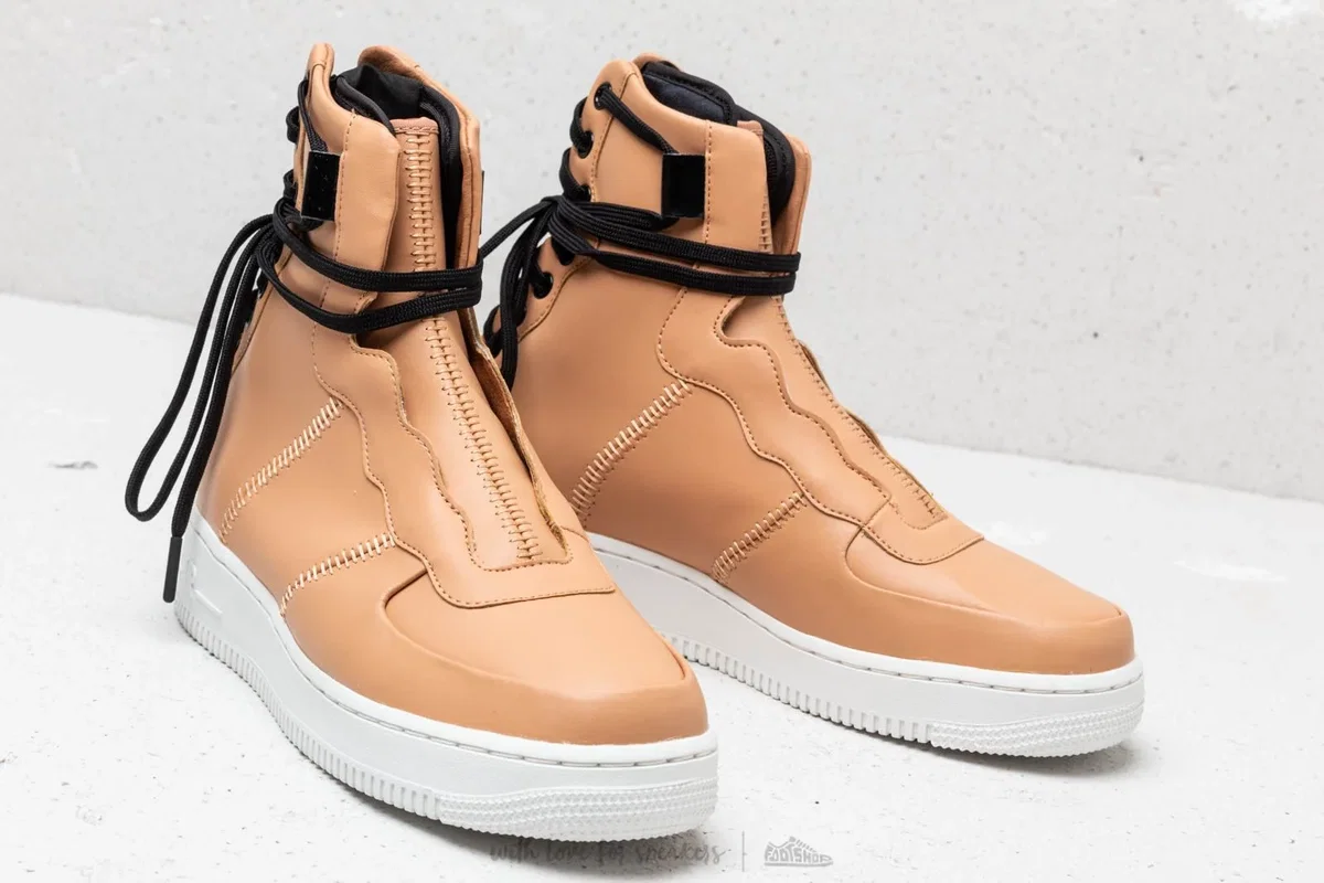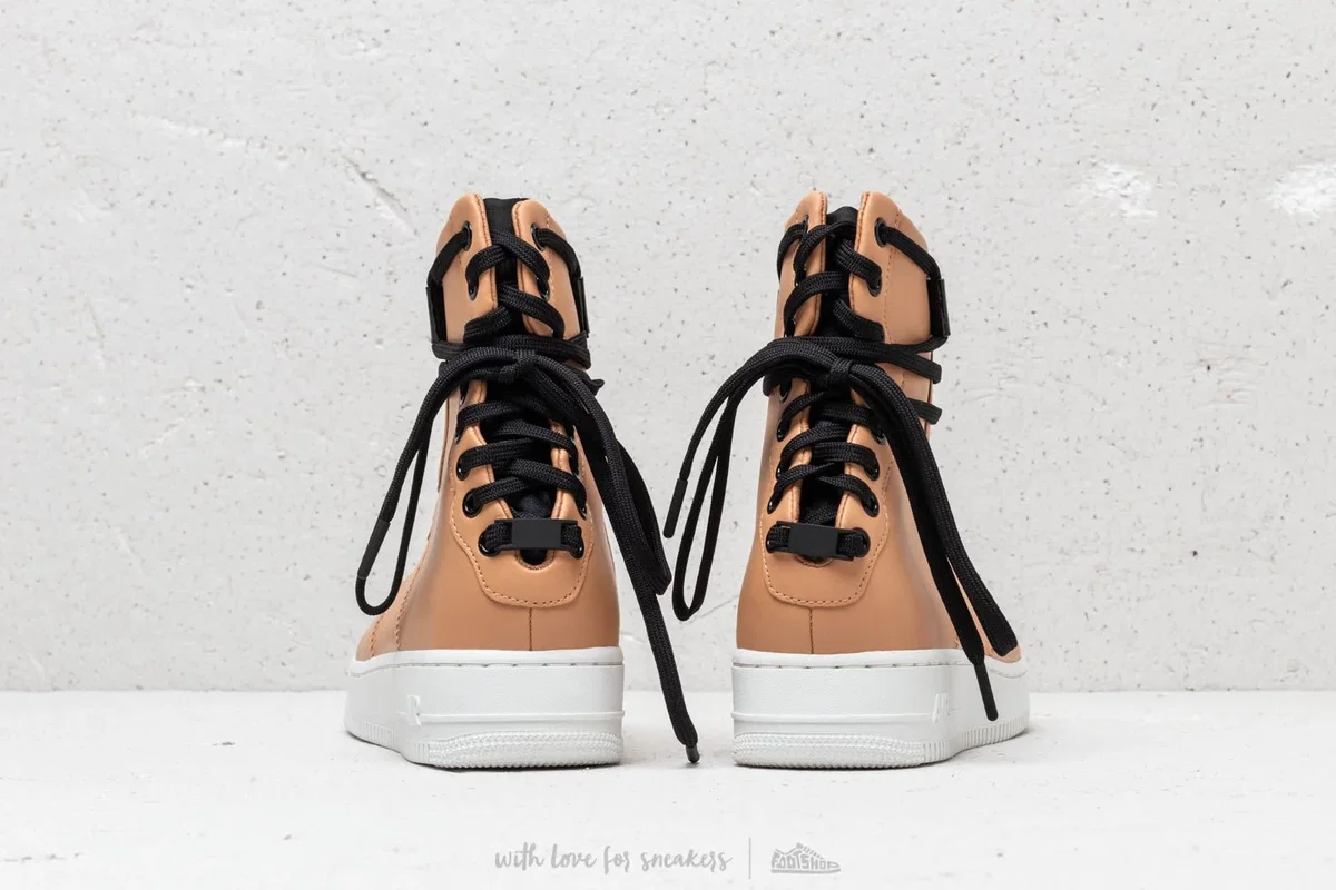 Las zapatillas Nike Air Force 1 Rebel XX (código de artículo AO1525 200) son una versión reinterpretada y vanguardista del clásico modelo de básquetbol de 1982, destacándose por su sistema de cordones tipo corsé en el talón. El color asociado al código 200 es el "Praline" (un tono caramelo o beige oscuro) combinado con negro y blanco cumbre.