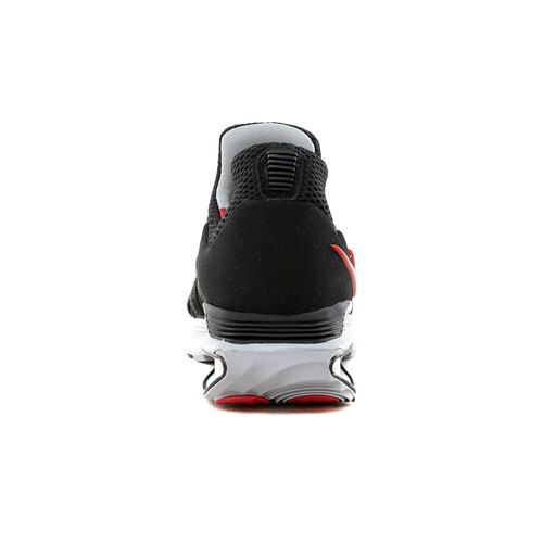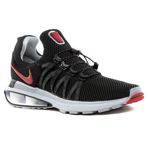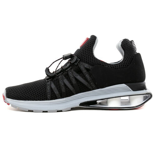 Nike Shox Gravity "Black" (código de estilo AR1999-016) es una versión moderna de la tecnología Shox. Este modelo en particular presenta una combinación de colores en negro con detalles en rojo universitario, blanco y gris lobo.