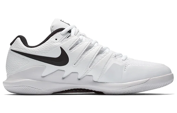 Nike Air Zoom Vapor X HC (AA8030-101) son zapatillas de tenis de alta gama diseñadas específicamente para superficies de pista dura (Hard Court). Este modelo en particular presenta una combinación de colores blanco, negro y gris, y es reconocido por su ligereza y capacidad de respuesta en la cancha.