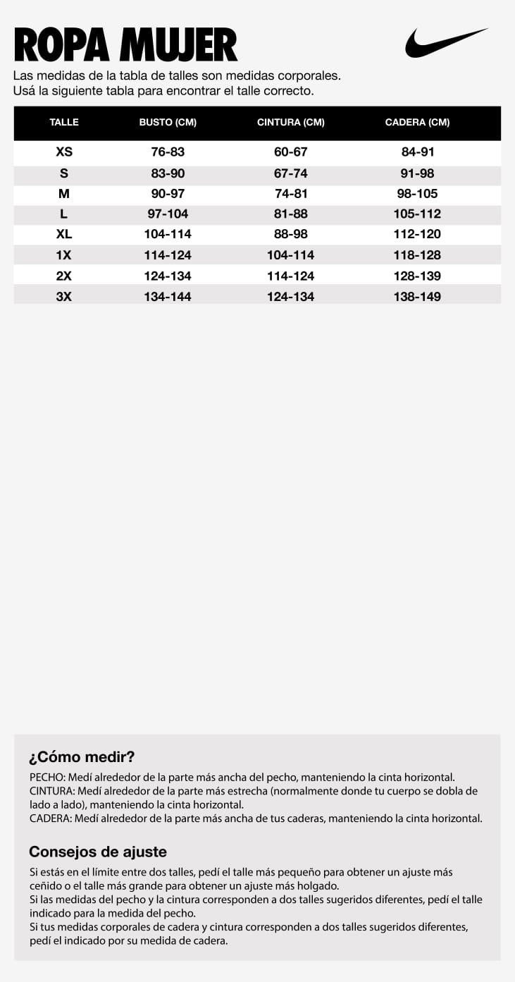 GUIA DE TALLES NIKE MUJER INDUMENTARIA